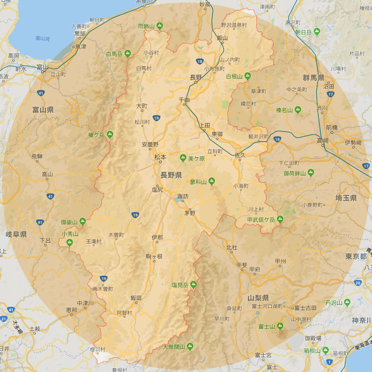 長野県全域(北信地域、中信地域、東信地域、南信地域)